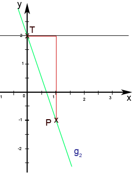 In Abb. 8.46b ist die Gerade dargestellt. Der Schnittpunkt mit der y-Achse hat die Koordinaten T(0; 2). Deshalb gilt:t=2